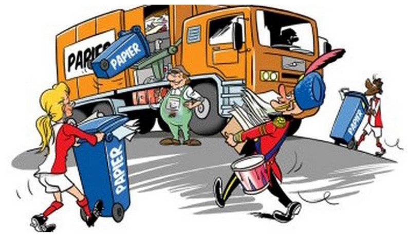 Het oud papier wordt zaterdagsmorgens opgehaald. We starten